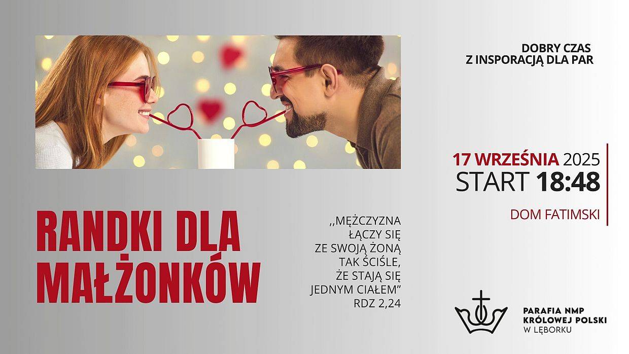 - 17 września wznawiamy Randki dla małżonków – spotkania, które pomogą odświeżyć relację, umocnić więź i odkryć na nowo piękno sakramentu małżeństwa.