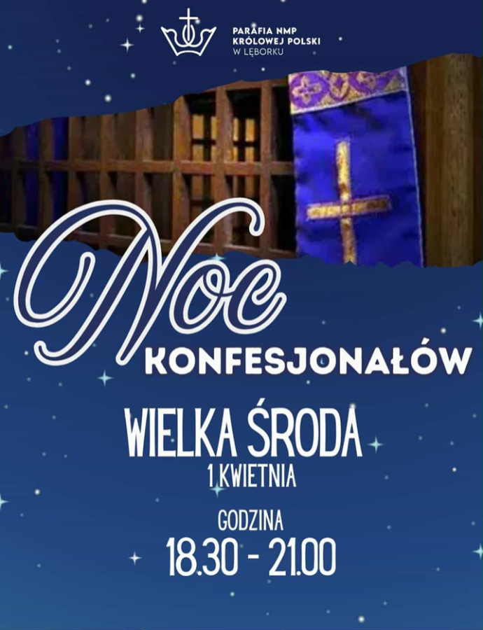 Spowiedź w naszej parafii w poniedziałek i wtorek od 17:00 do 18:00 oraz przy udziale zaproszonych kapłanów w Wielką Środę w ramach „Nocy Konfesjonałów” od 18:30 do 21:00.