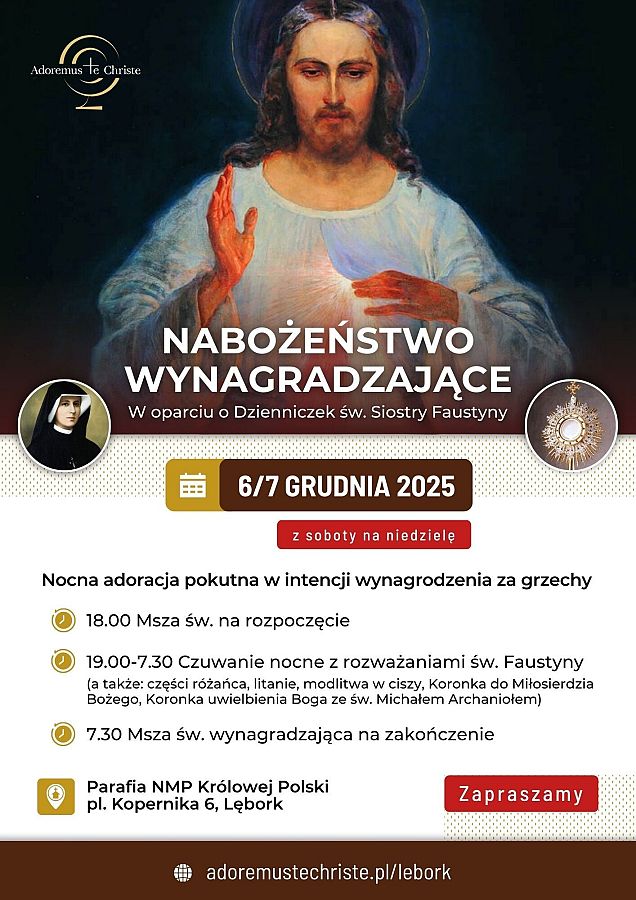 Zapisy na nocną adorację pod linkiem: adoremustechriste.pl/lebork